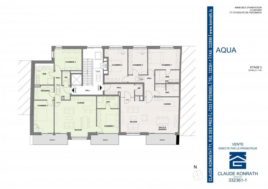 La résidence 'AQUA' sise 77-77A, rue de Fischbach à L-7447 LINTGEN est conçue suivant le label énergétique A-B.