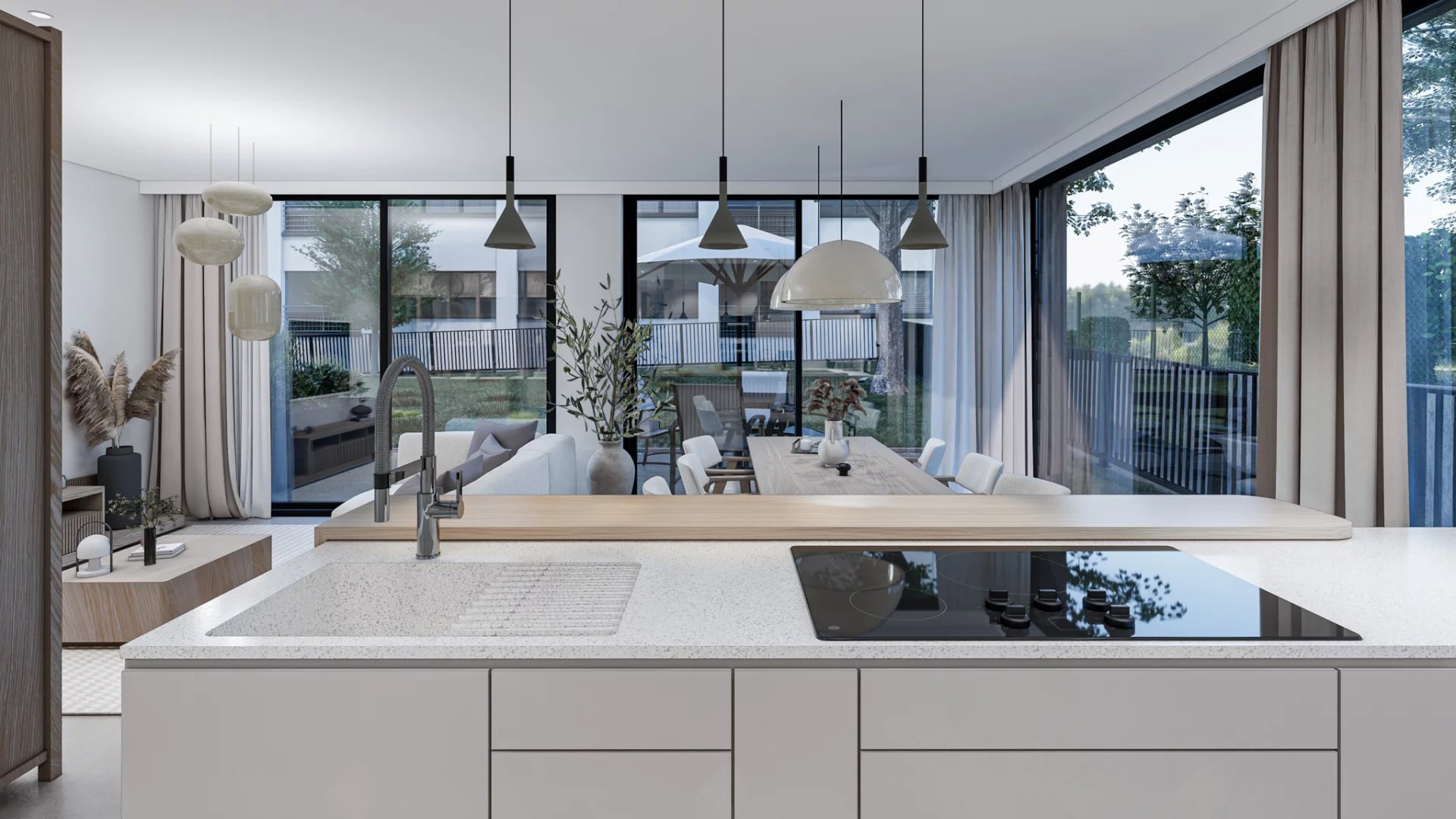 • Séjour et salle à manger lumineux avec cuisine ouverte